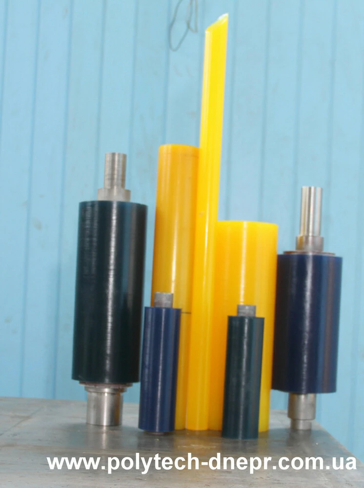 Завод Політех-Днепр виготовляє стрижні з поліуретану діаметром від 20 мм різної твердості від 45А до 70Д за шкалою Шора.